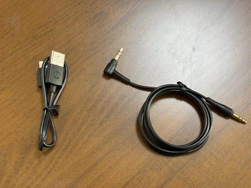 フル充電で60時間も再生できますが、充電を忘れるときもあるので、バッテリーの充電中はATH-M40xを使用しています。