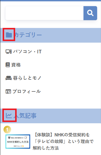 トップページにはアイコンをつけているため、統一感を出すためにアイコンを追加しました。