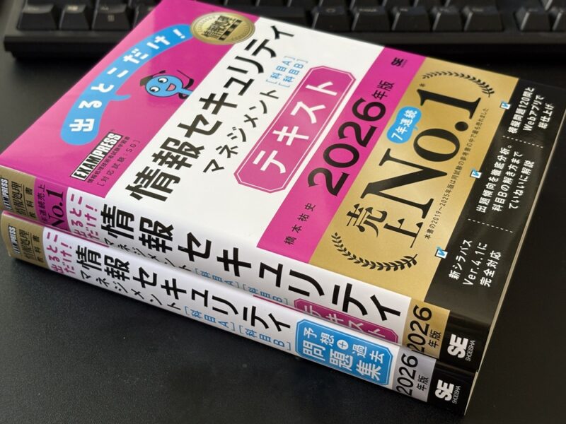 ユメソバは「出るとこだけ!情報セキュリティマネジメント」のテキストと問題集の2冊のみで勉強しました。